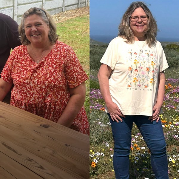 My man en dogter eet nou elke aand saam met my, en hulle het ook al gewig verloor! As gesin sit ons weer saam om ‘n tafel, sonder TV of fone en lekker gesels. Dis só lekker om dit terug te hê. My doel is om oor die volgende paar maande van chroniese medikasie ontslae te raak en my gesondheid deur dieet en leefstyl te herstel.